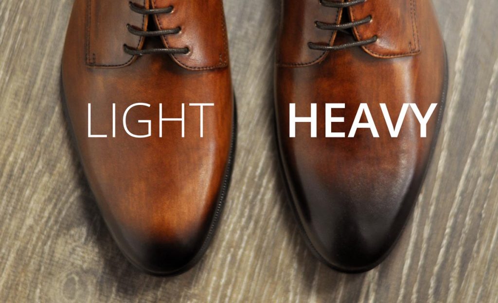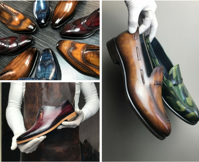 יותר ממה שצביעת Patina היא מלאכה, היא אמנות. זוהי שיטת צביעה ידנית של עור בעזרת צבעי שמן ומים, והיא עוברת בין דורות של אמני נעליים ברחבי אירופה. צביעה זו מעניקה גוון עמוק ויוקרתי לנעליים, הצביעה מתבצעת בעזרת מכחול ומברשת מה שמבטיח כי לא יהיה זוג נוסף זהה לשלך, בכל נעל הגוונים משתנים מעט, ובכך מעניקים יוקרה וייחודיות לנעל שלך .