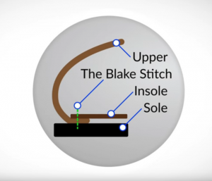Blake stitch - בשיטה זו תופרים את גפת הנעל ישירות לסוליה מה שמקנה לנעל עמידות וחוזק מצד אחד ומן הצד השני מאפשרת לה להיות גמישה הרבה יותר מנעל בתפירת Goodyear.